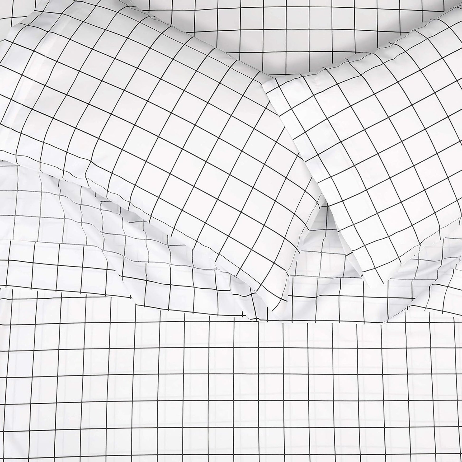 Soft Microfibre Bed Sheet Set with Elastic Pockets - Black Grid