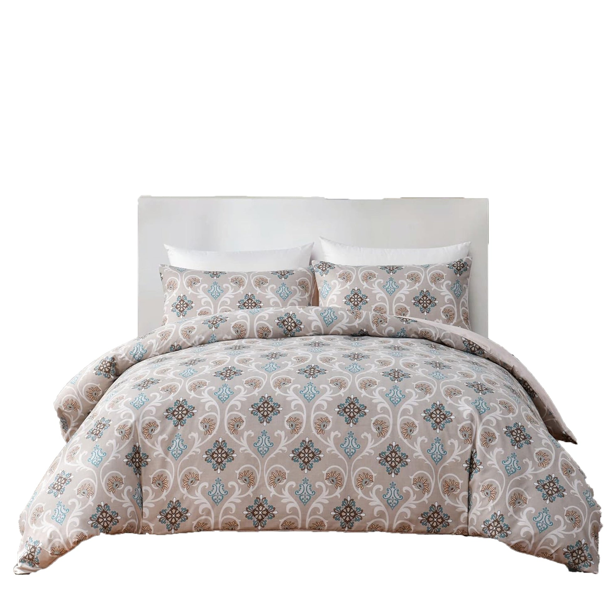 Soft Microfibre Bedding Quilt Cover Set - Floral Beige