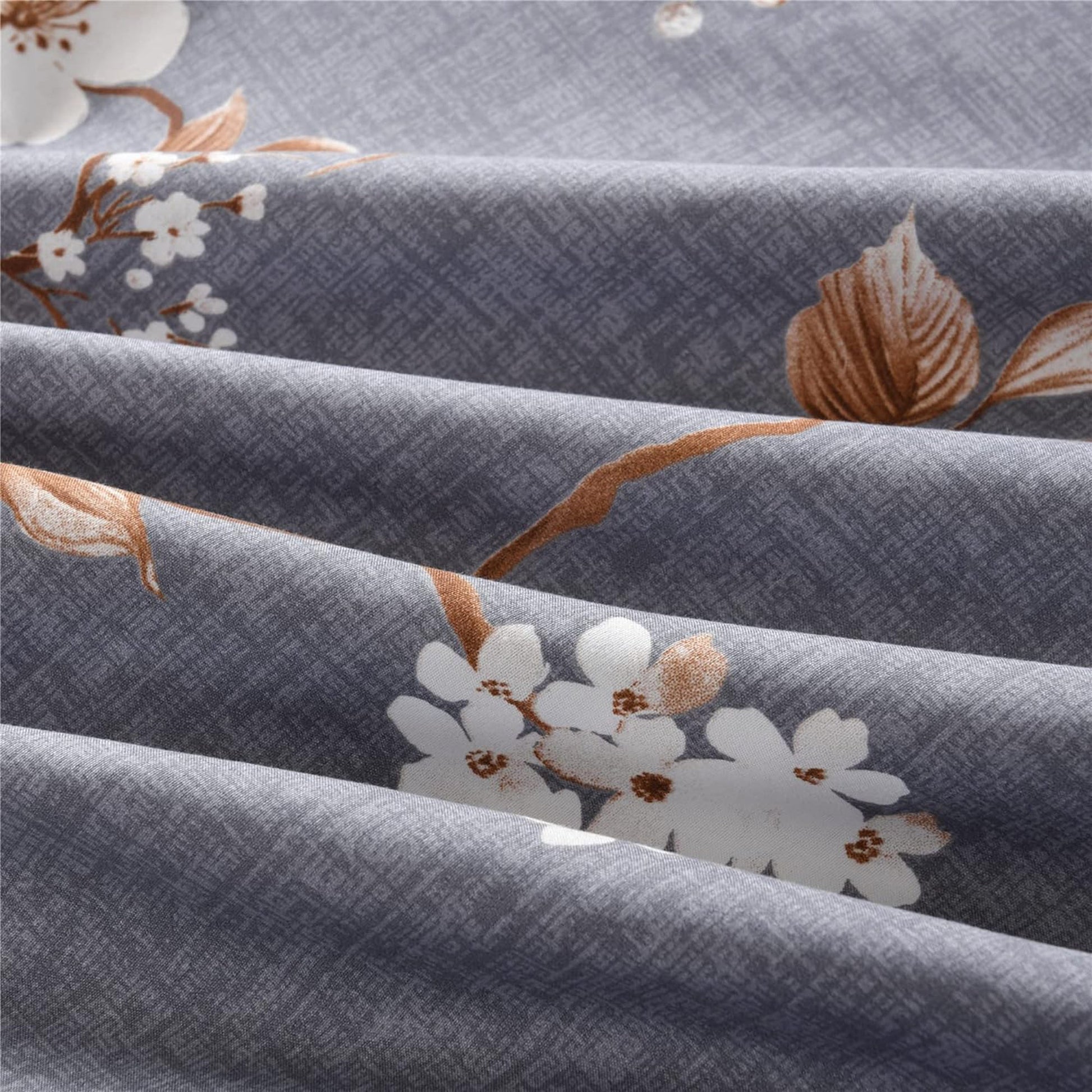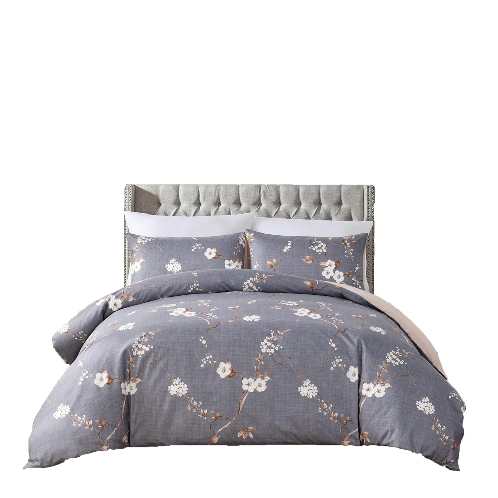 Soft Microfibre Bedding Quilt Cover Set - Grey Floral