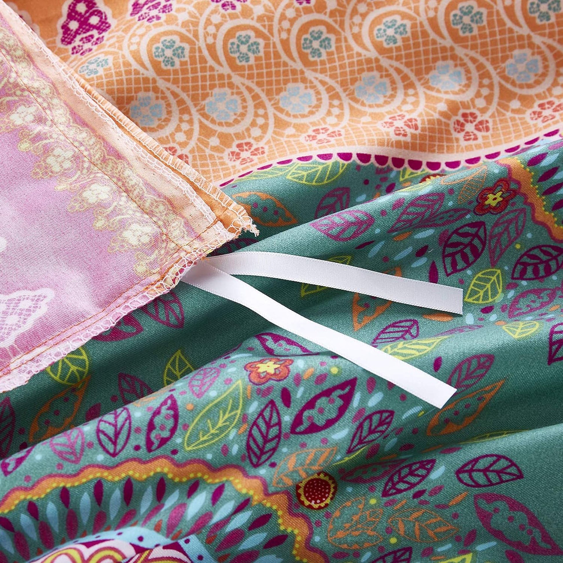 Soft Microfibre Bohemian Mandala Pattern Printed Quilt Cover Set - Orange Coral