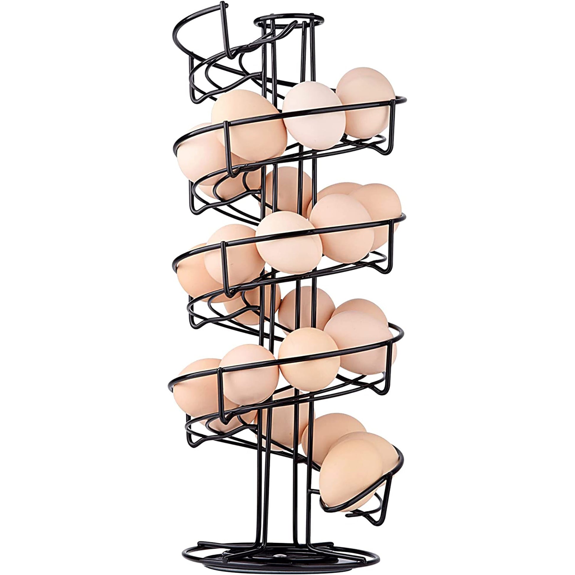 Spiral Design Metal Egg Skelter Dispenser Storage Display Rack Rack - Black