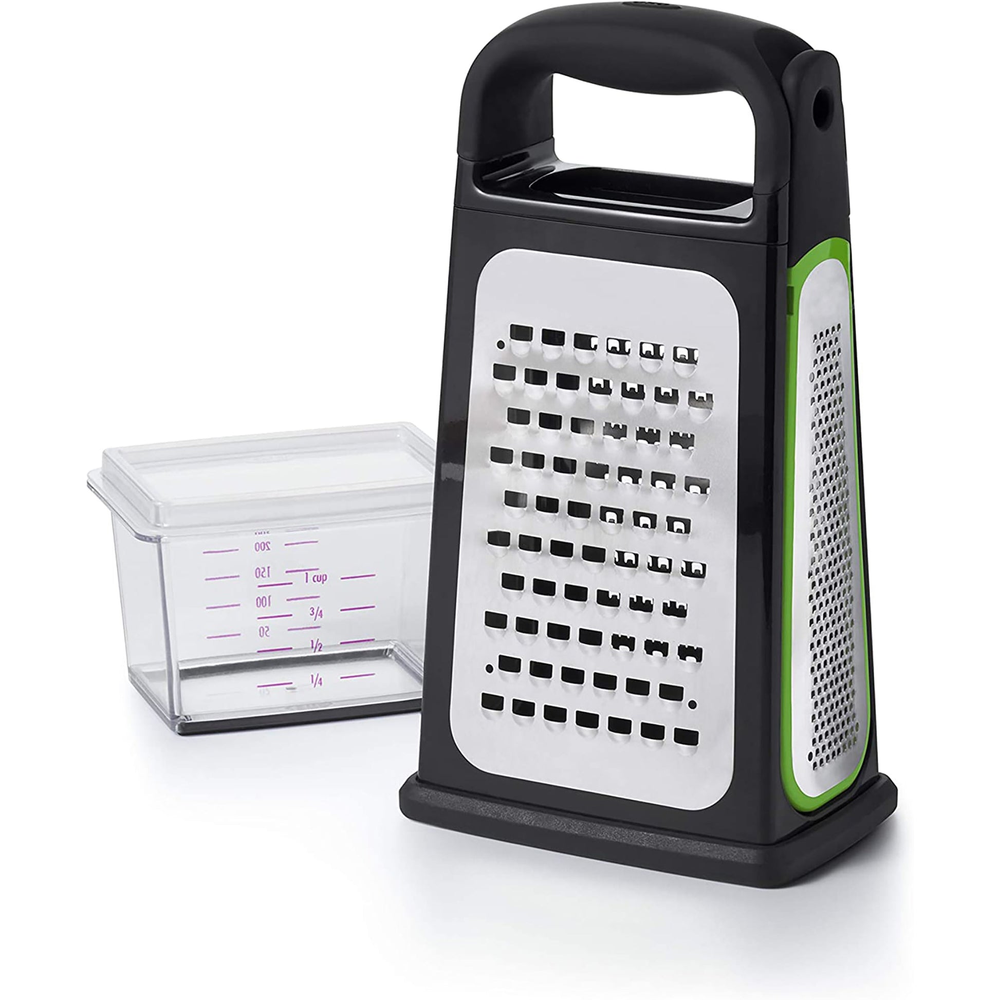 -Each side of the Grater features a different surface: medium grater, coarse grater, slicer and removable zester.