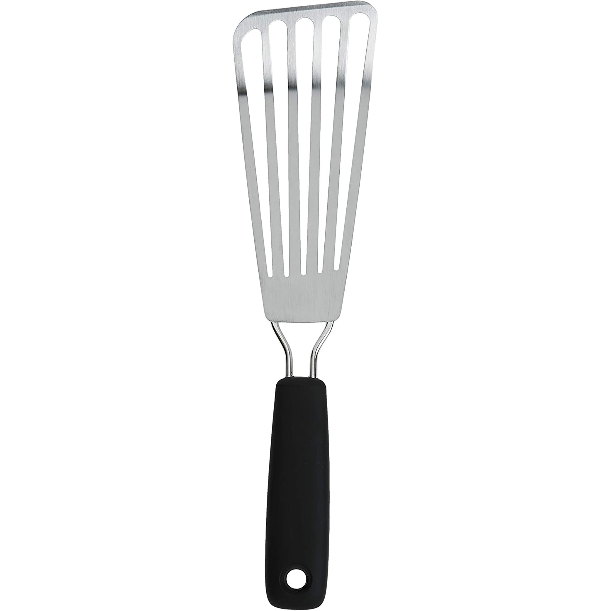 -This fish turner lets you lift, flip and transfer fish while keeping it intact. Use this handy tool for whole fish, filets, seafood cakes, and more. The beveled edge slide easily beneath foods and the slots in the head allow grease to drain. The durable, stainless steel head is oversized for larger fish and the soft handle allows for a comfortable grip. Bpa free. Dishwasher safe.