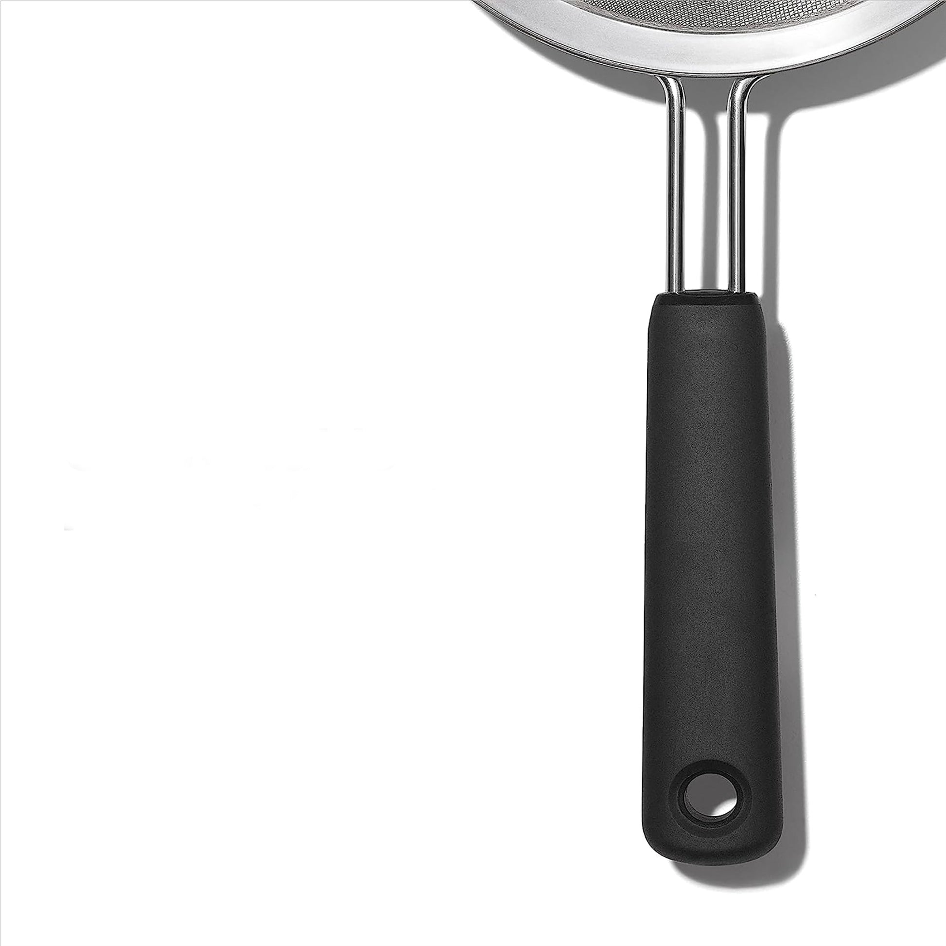 -The fine mesh strainer is ideal for rinsing and straining vegetables, berries, pasta, and more. The soft, comfortable handle would not slip, even when wet.