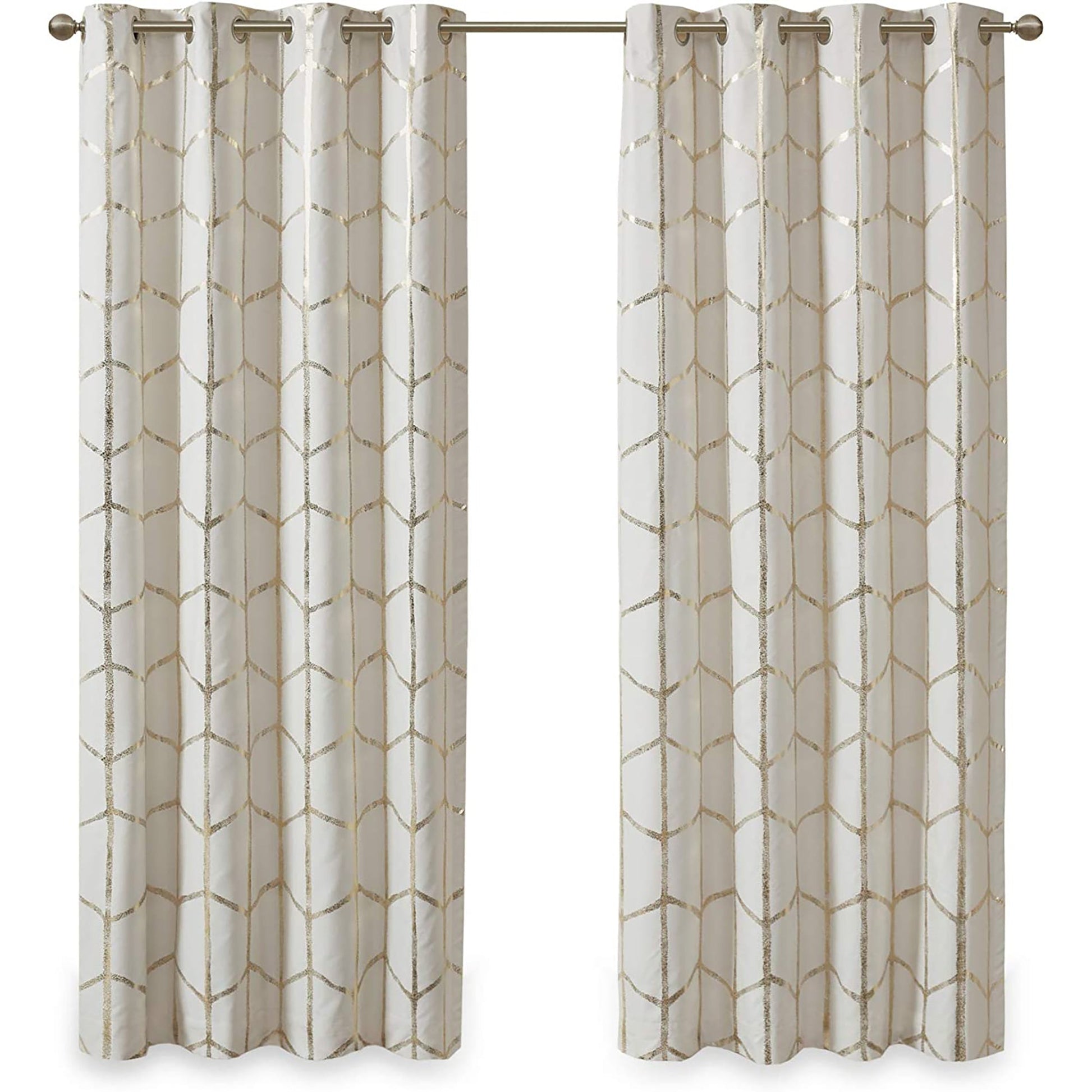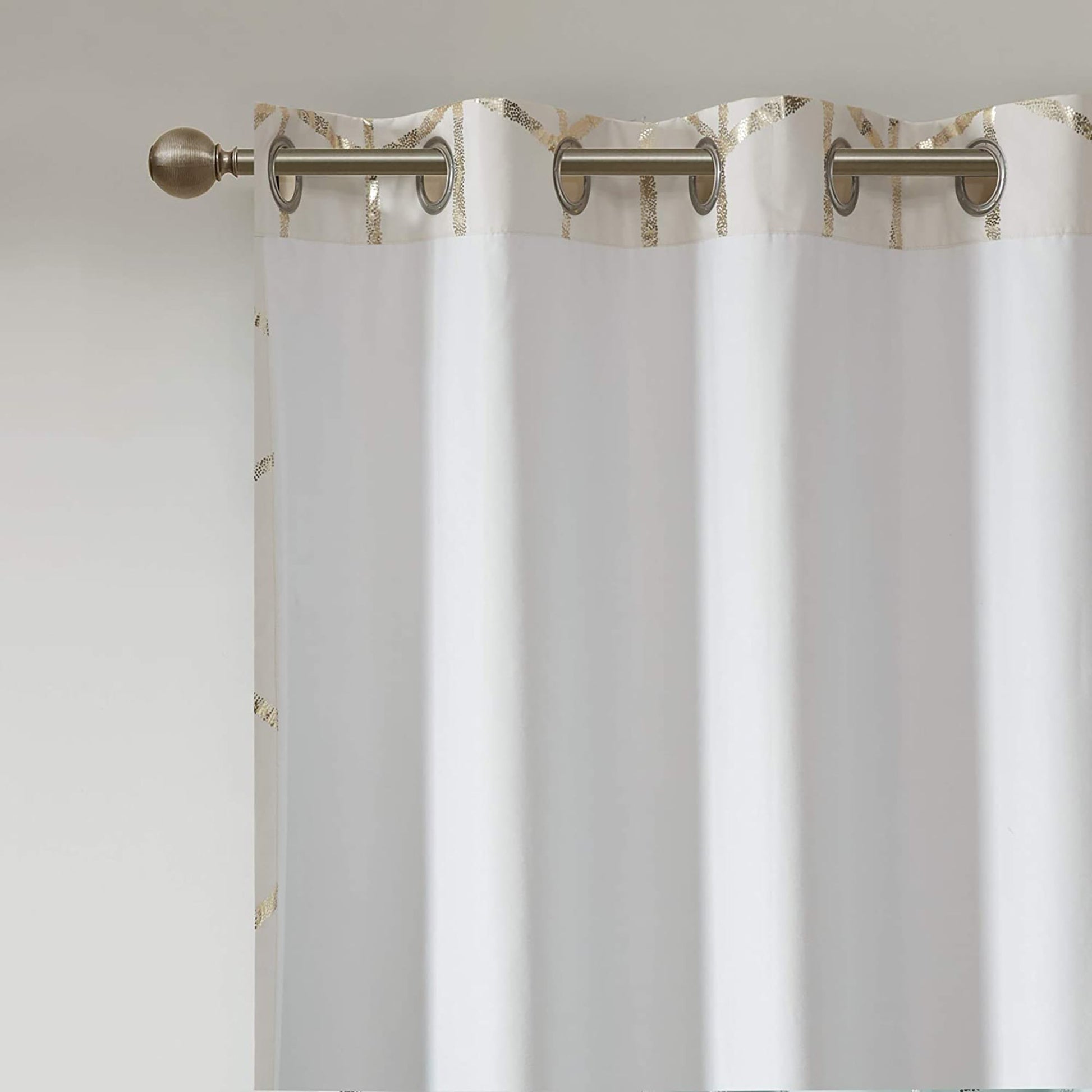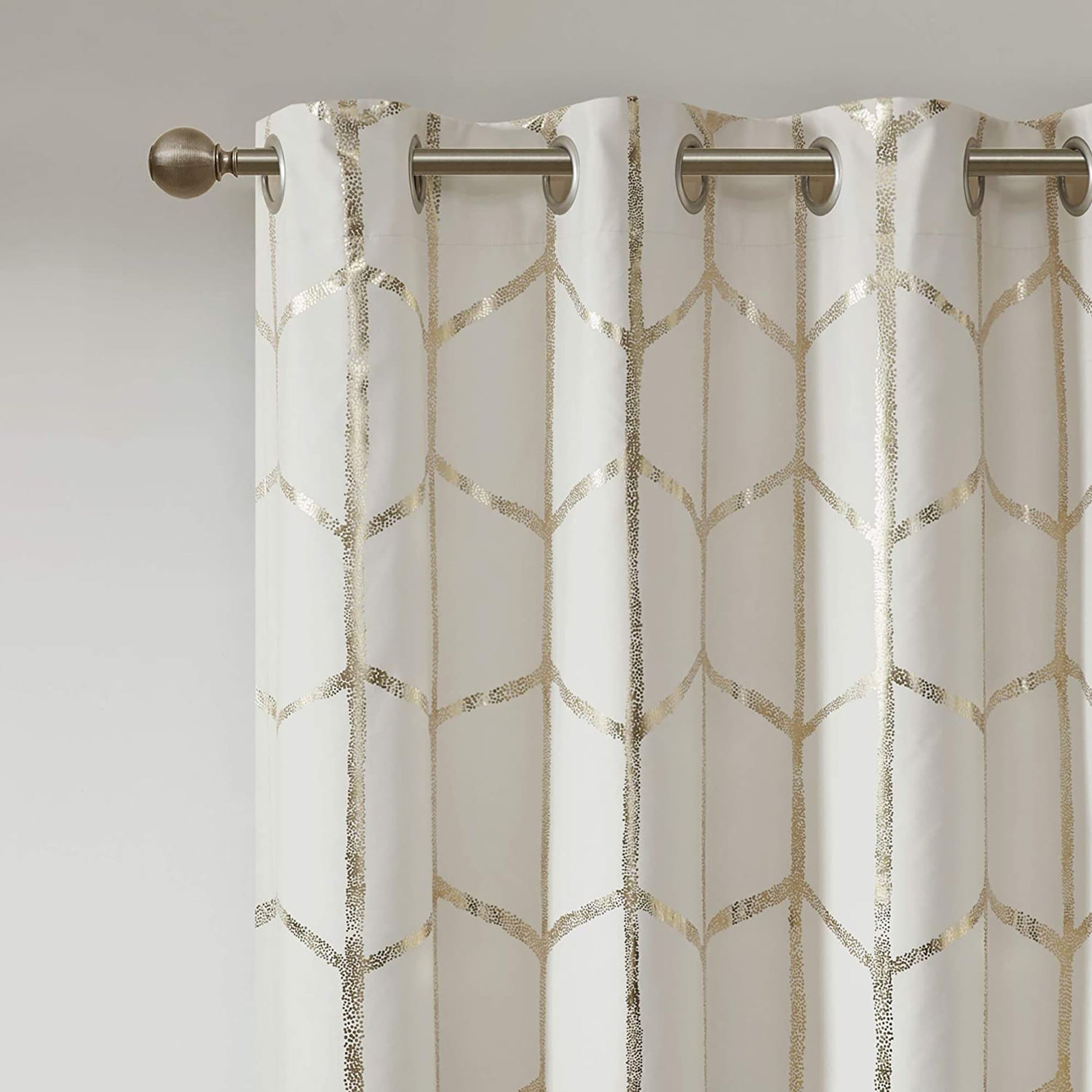Thermal Insulated Metallic Print Grommet Light Blocking Curtain Panel 1 Piece - Ivory and Gold