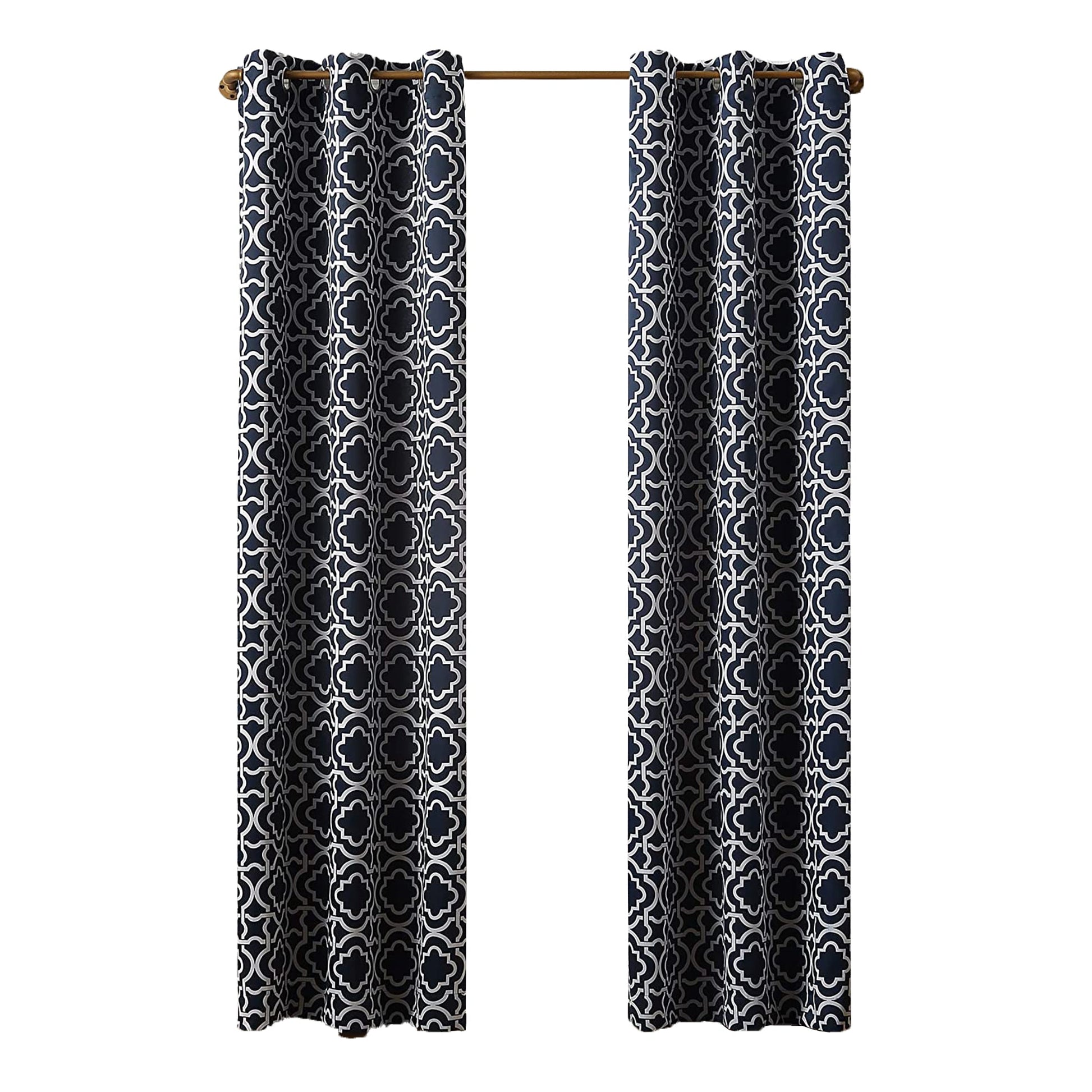 -Featuring a bold intersecting trellis geometric design, this curtain panel will add classic elegance and modern sophistication to any living space. Equipped with built-in metal grommets for easy hanging on standard curtain rods up to 1. 5 inches in diameter. This curtain will block out most outside light, offers outside noise reduction by up to 30%, and decreases energy lost through your windows by up to 40%. Comfort is optimized with thermal properties that help keep summer heat and winter chill out of your home. Hang in your living room for enhanced privacy, or in your bedroom for a sounder, more uninterrupted sleep.