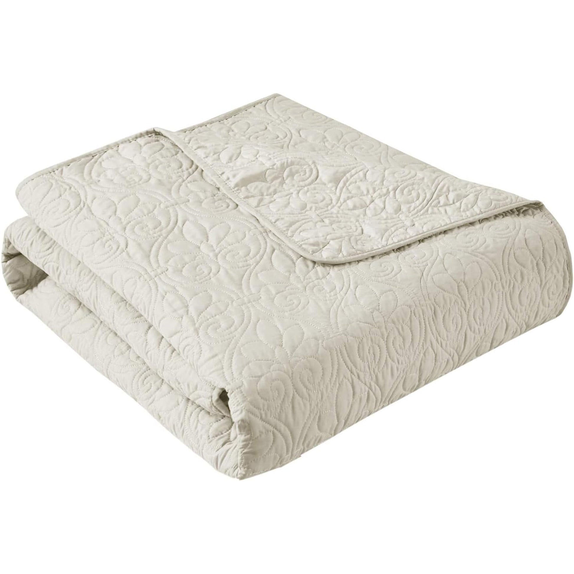 Ultra Soft Cotton Filled Damask Stitching Design Quilted Throw Blanket - Ivory