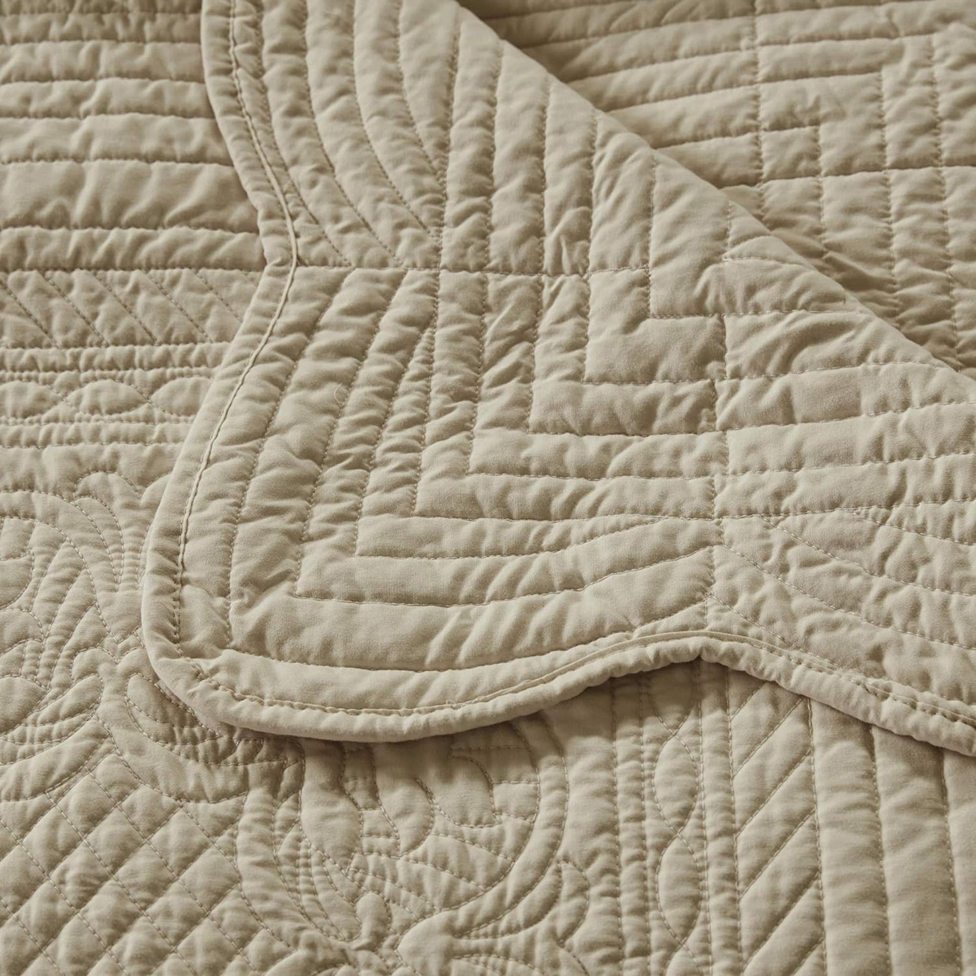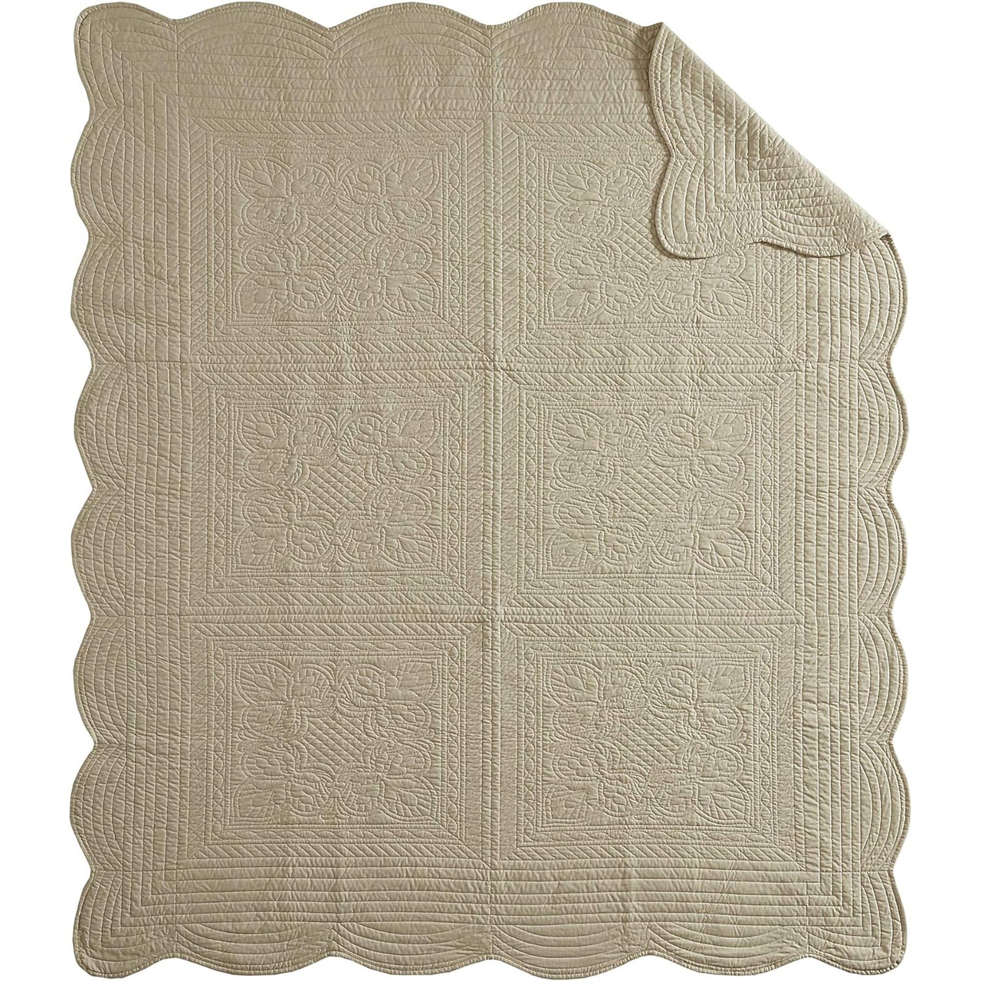 Ultra Soft Cotton Filled Damask Stitching Design Quilted Throw Blanket - Khaki