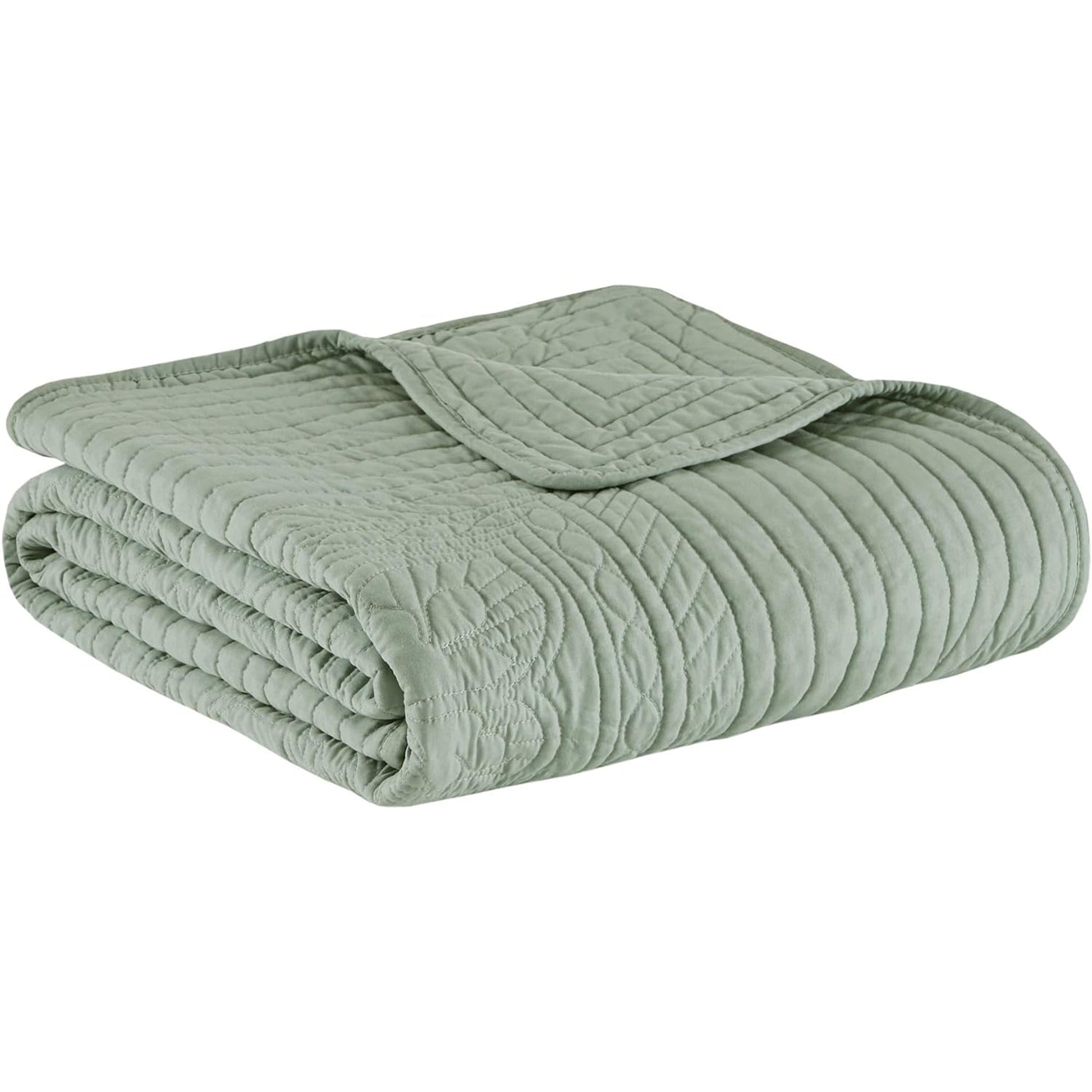 Ultra Soft Cotton Filled Quilted Throw Blanket - Scalloped Borders Seafoam