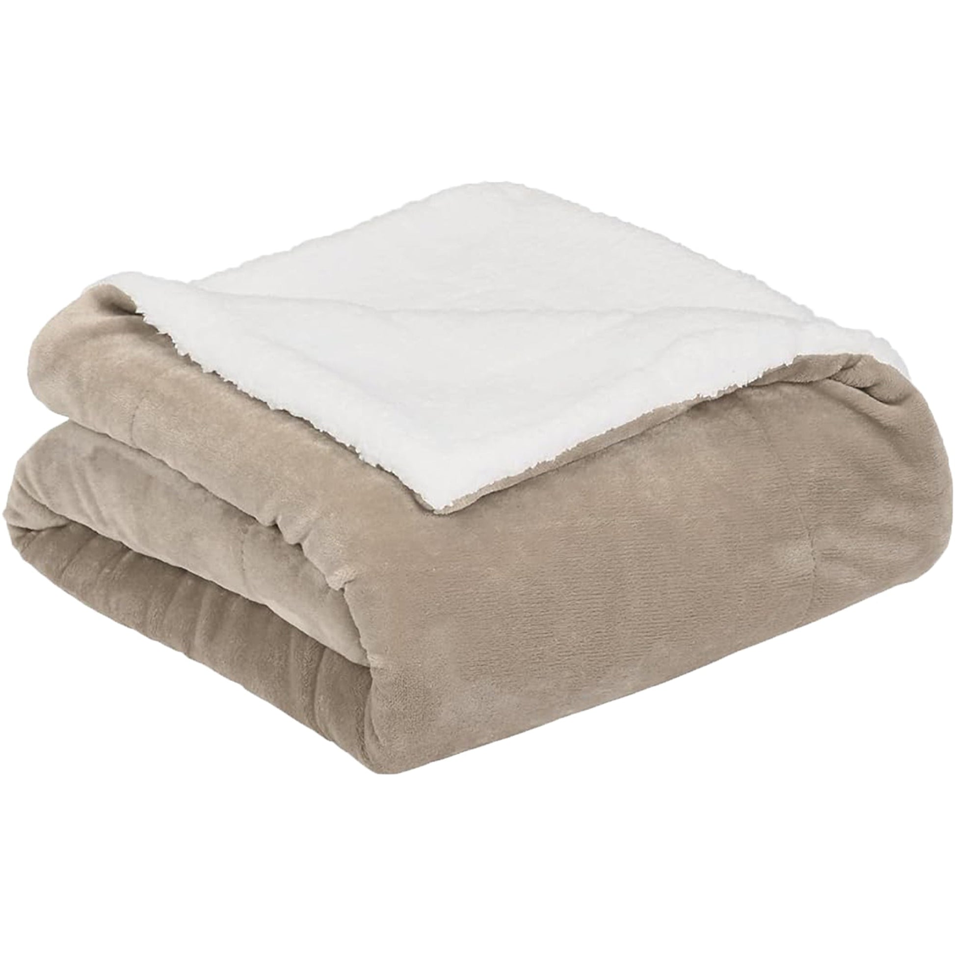 Ultra-Soft Micromink Sherpa Blanket - Taupe