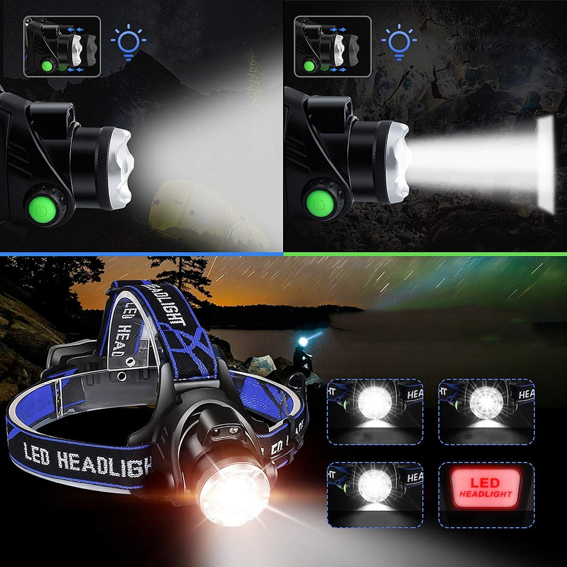 Zoomable Headlamp Rechargeable LED Head Torch 350000lm