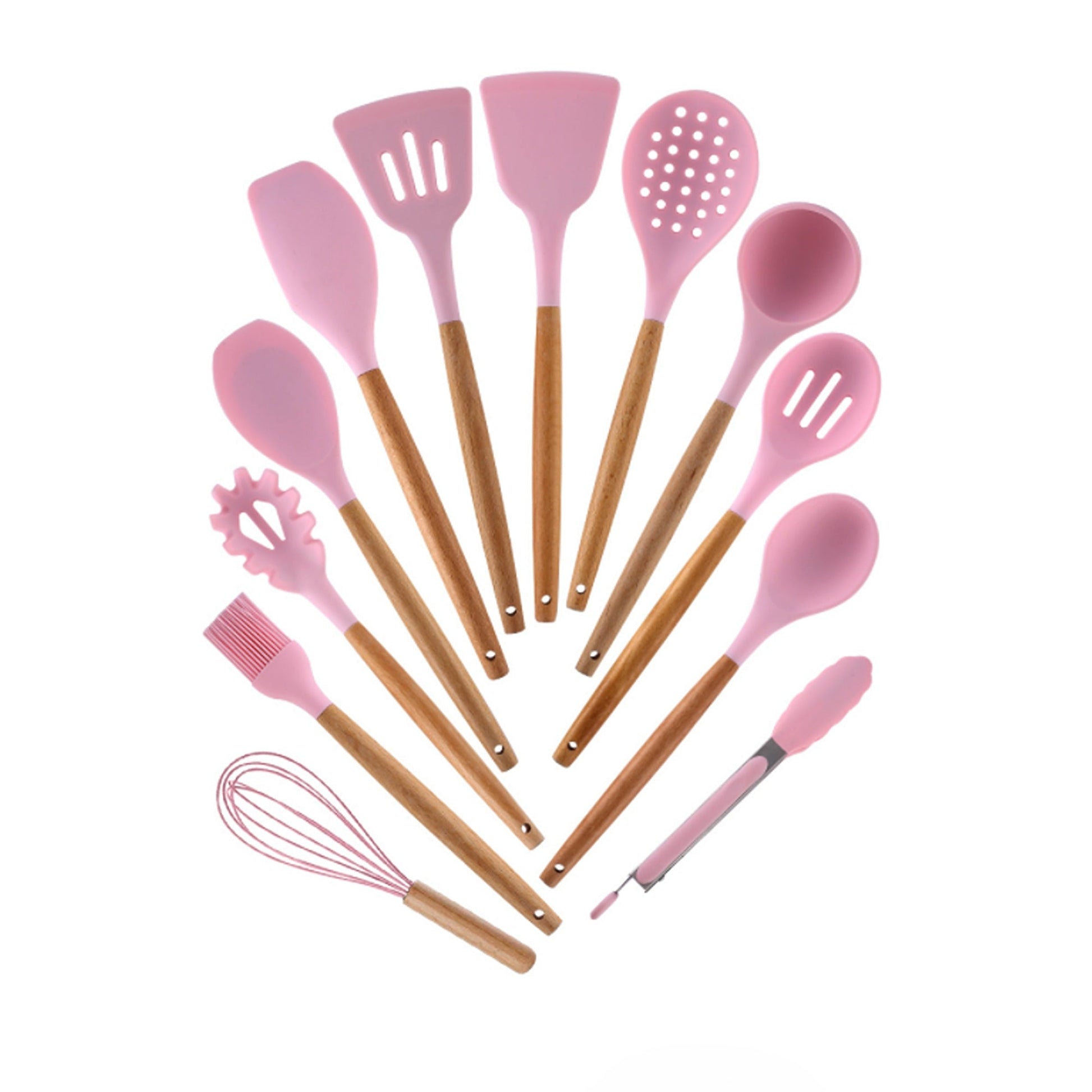 Silicone Cooking Utensils Set with Wooden Handles - 12pcs