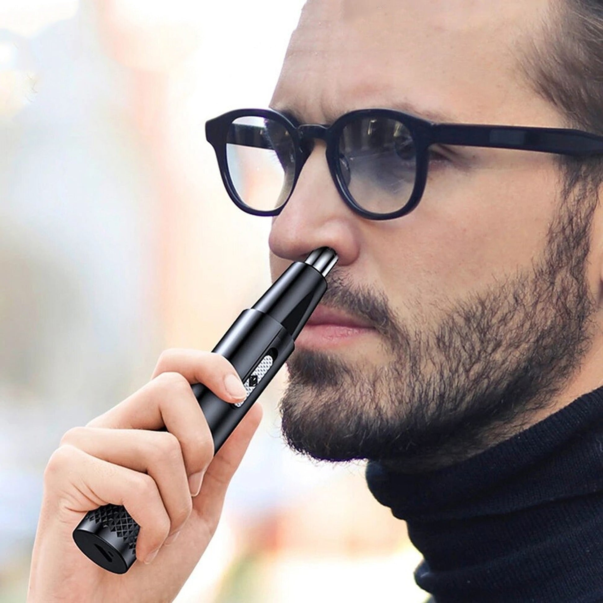 -Versatile: This high-end nose trimmer Made of high quality stainless steel, this Ear and Nose Hair Trimmer can effectively and comfortably remove unwanted hair from your nose, ears, eyebrows, beard and face. One-button design is easy to use and suitable for men and women. Let you show the most confident side anytime, anywhere.