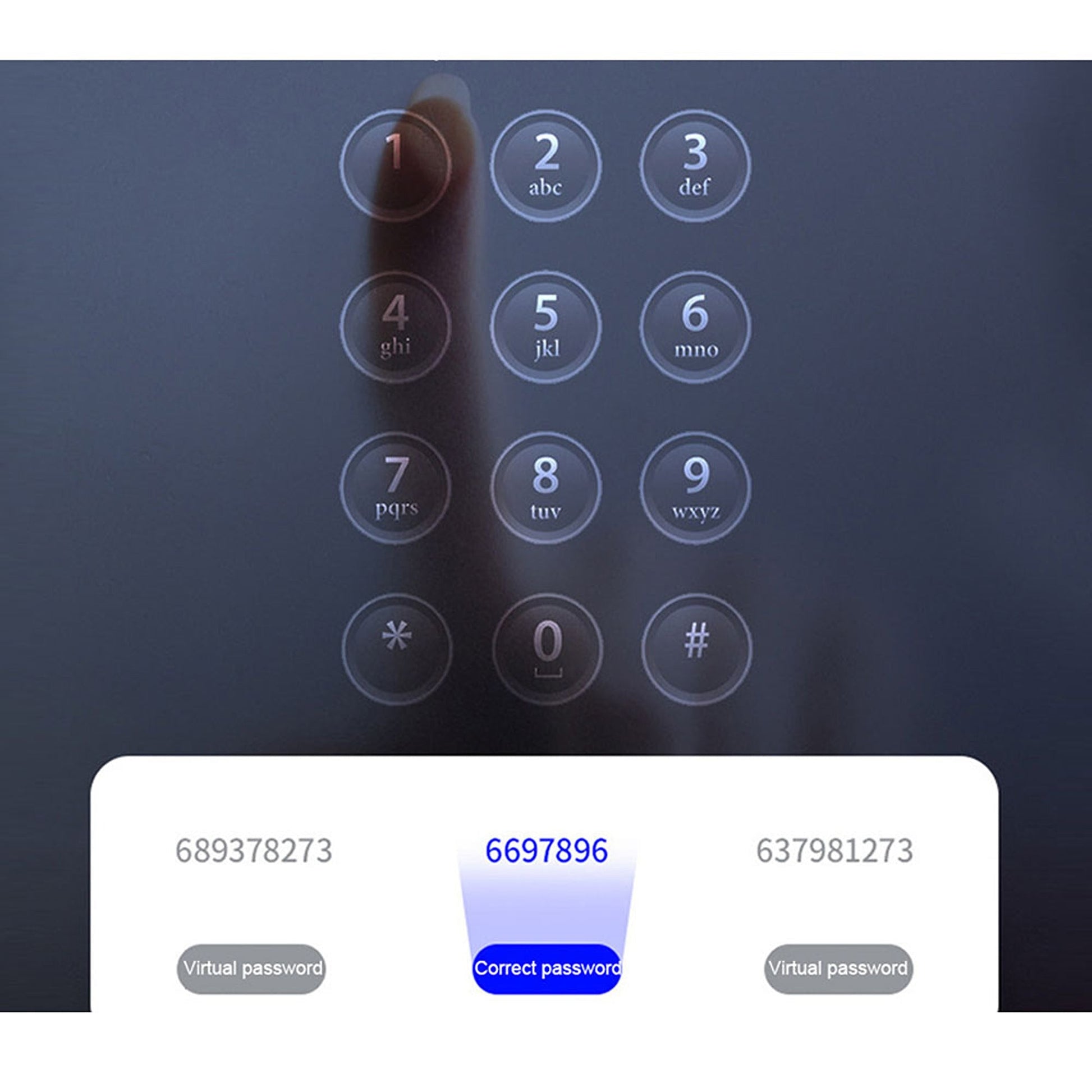 -Random Password Creation: Users may enter any random digits in front of or after the correct password while inputting, to confuse anybody that may be watching during entry to ensure maximum safety and security.