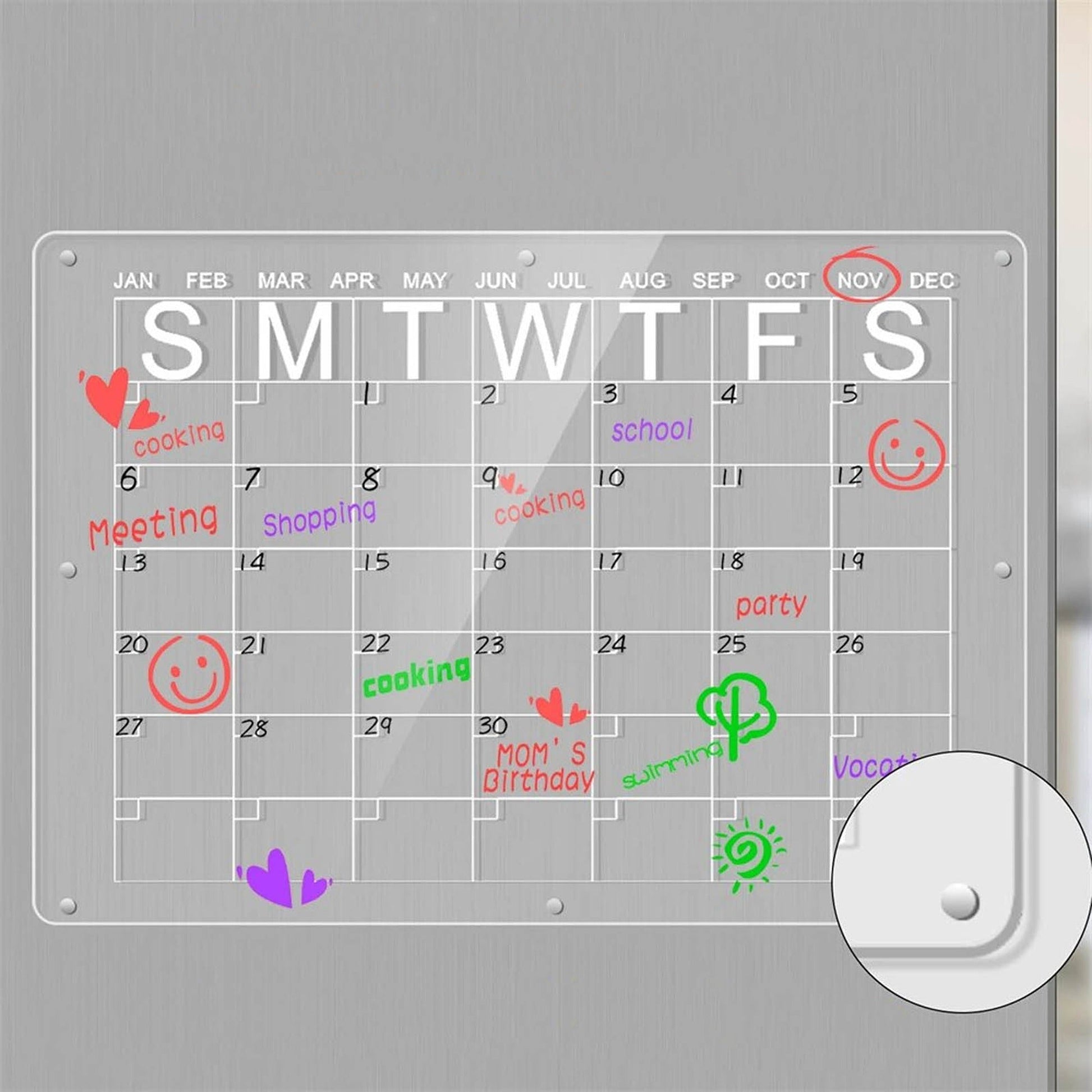 -The acrylic refrigerator monthly and weekly calendar set is a product designed for you to plan your daily life, and the stylish transparent acrylic magnetic calendar panel and memo set allows you to write more.