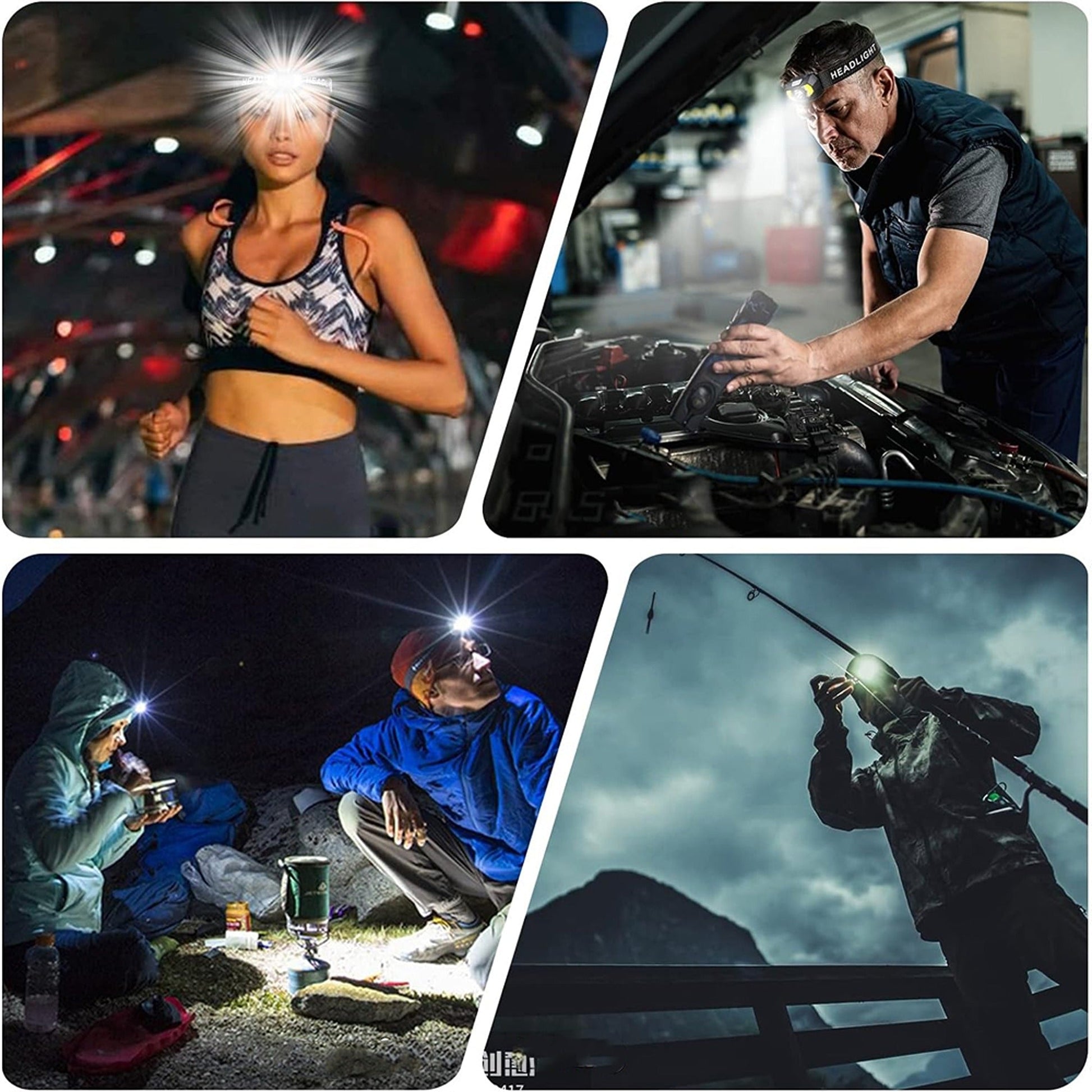 -Ultra Bright 6 Light Modes: Adopted advanced LED and COB lights, our bright headlamp with 800 Lumens can offer the light distance of up to 150meters. It can light up your road at night and offer enough light for your tent, room or garage in the dark. Press the control button can switch 6 light modes for your different needs: High Light, Low Light, Side COB Lights, 3 Lights Red light and Red SOS Light.