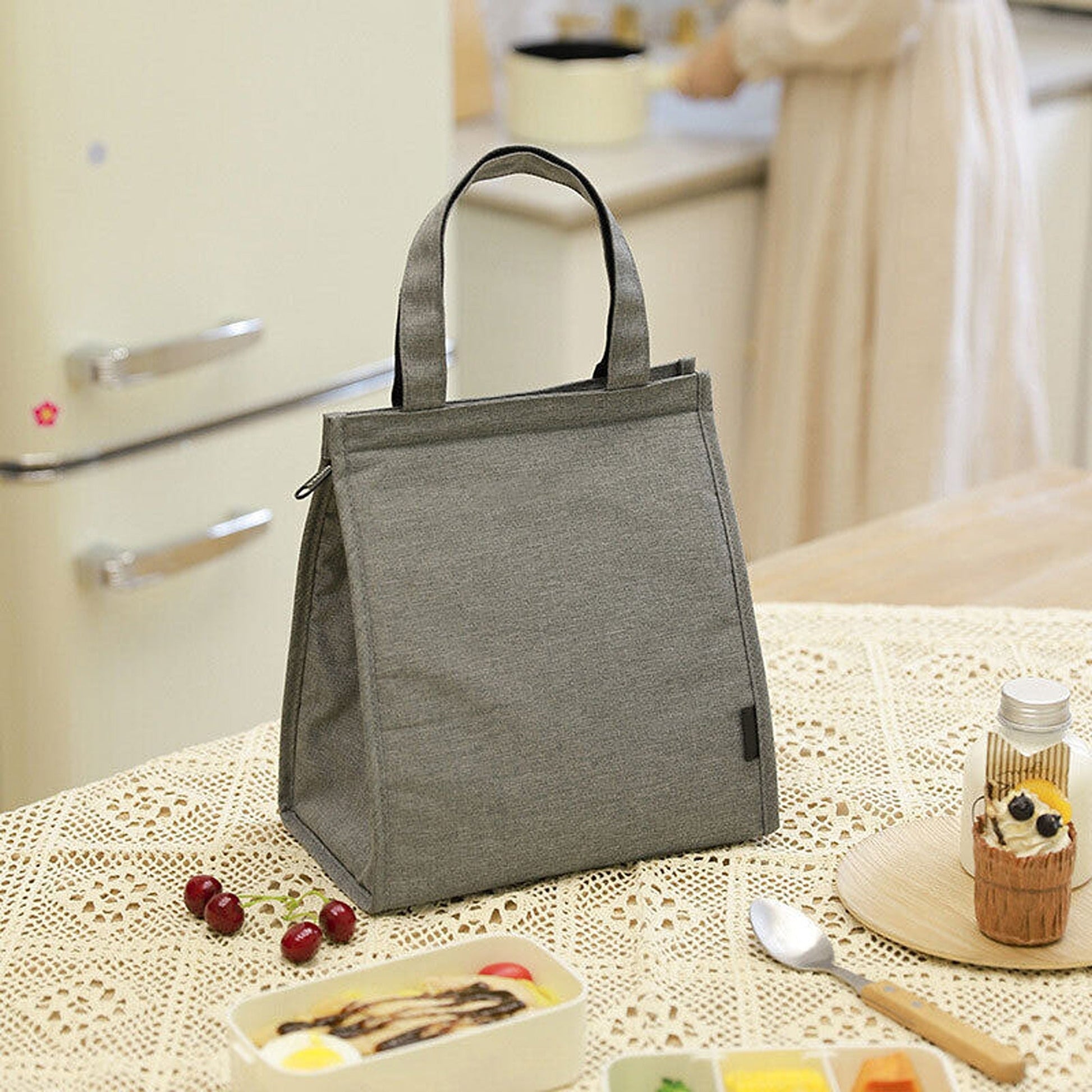 Grey Insulated Lunch Bag Thermal Bento Box Carrier for Work and Office