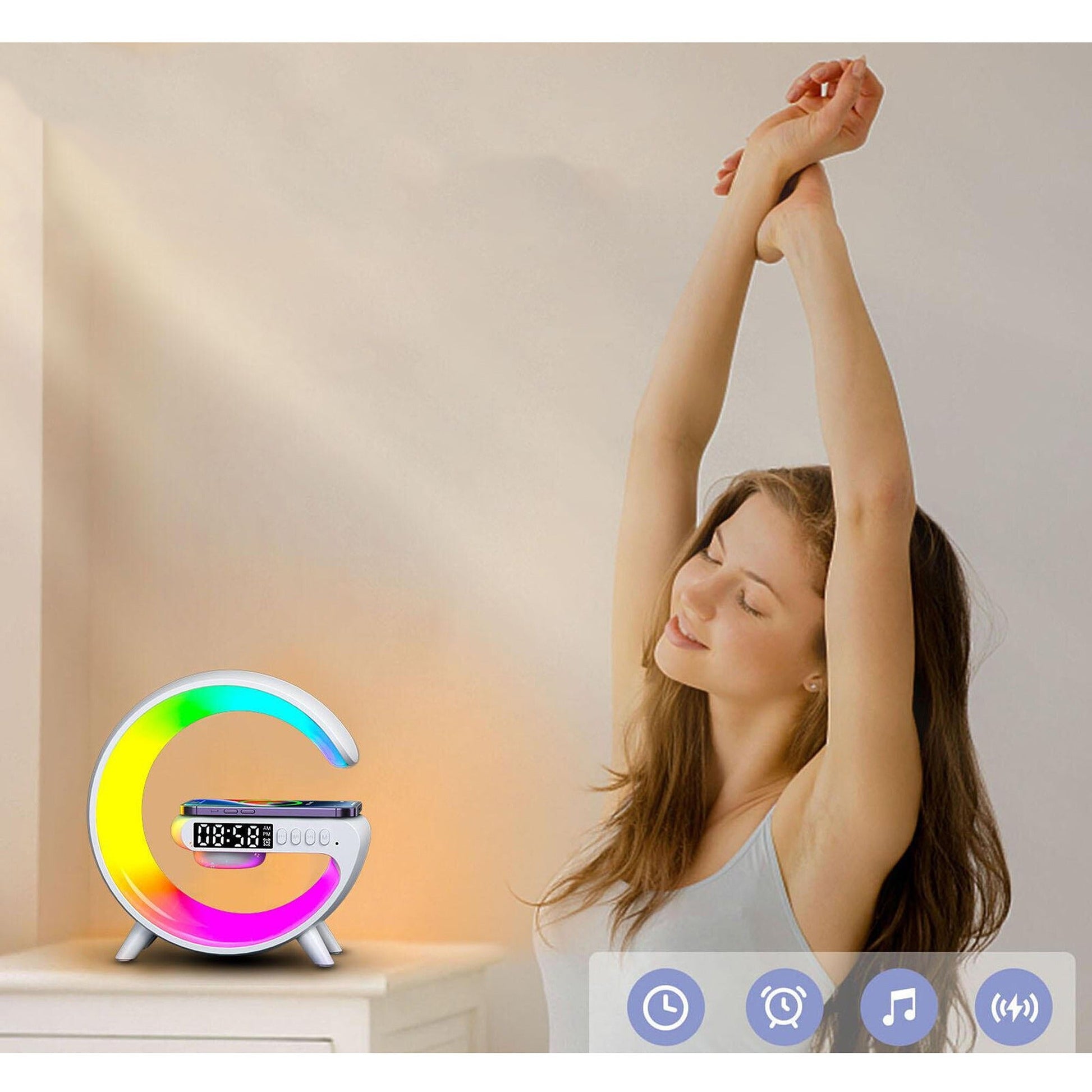 -Improve Your Mood: Let the beautiful LED lights and music from this Multifunction Wireless Charger. Pad Stand Speaker enhance your mood and a relaxing atmosphere.
