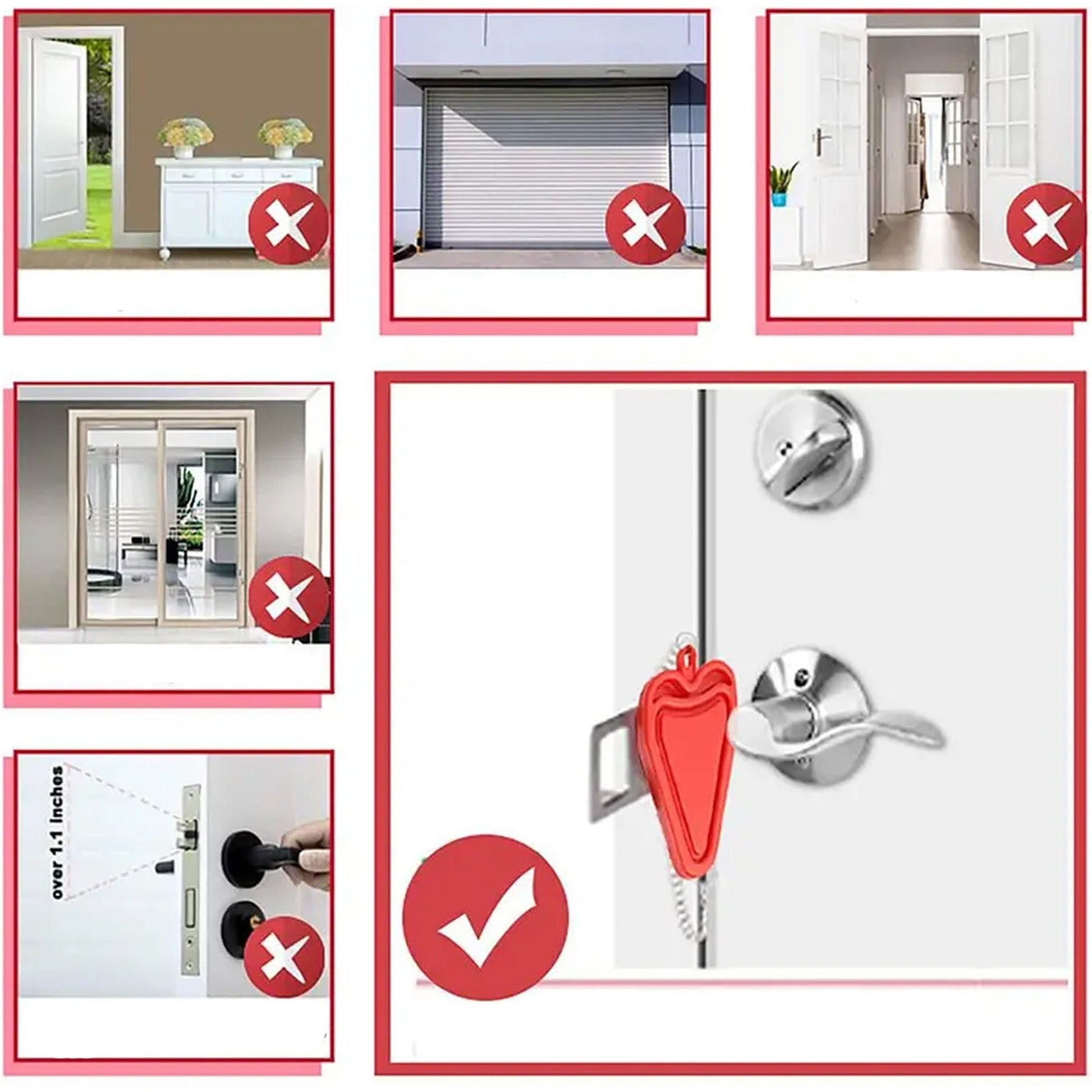 -Easy to install: The lock can be easily installed and removed in seconds on any door that open inwards without any tools required.