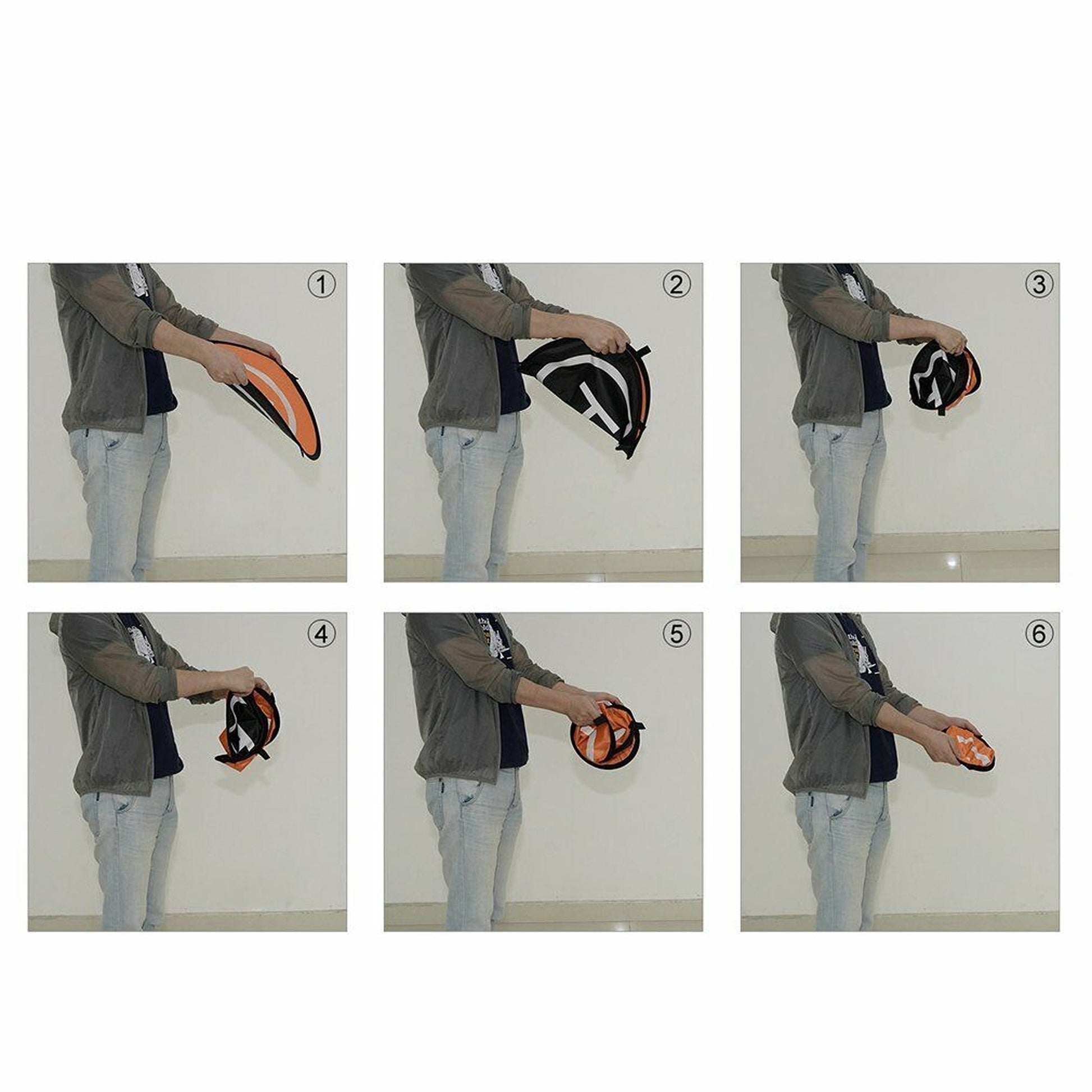 -Portable and foldable design is easy to carry out. Distribution of three plastic spikes, in the dirt ground can be fixed operation, more stable and smooth. With luminous reflection function, even in the case of low light at night, you can accurately find the location of the apron. One side is blue and the other side is orange.