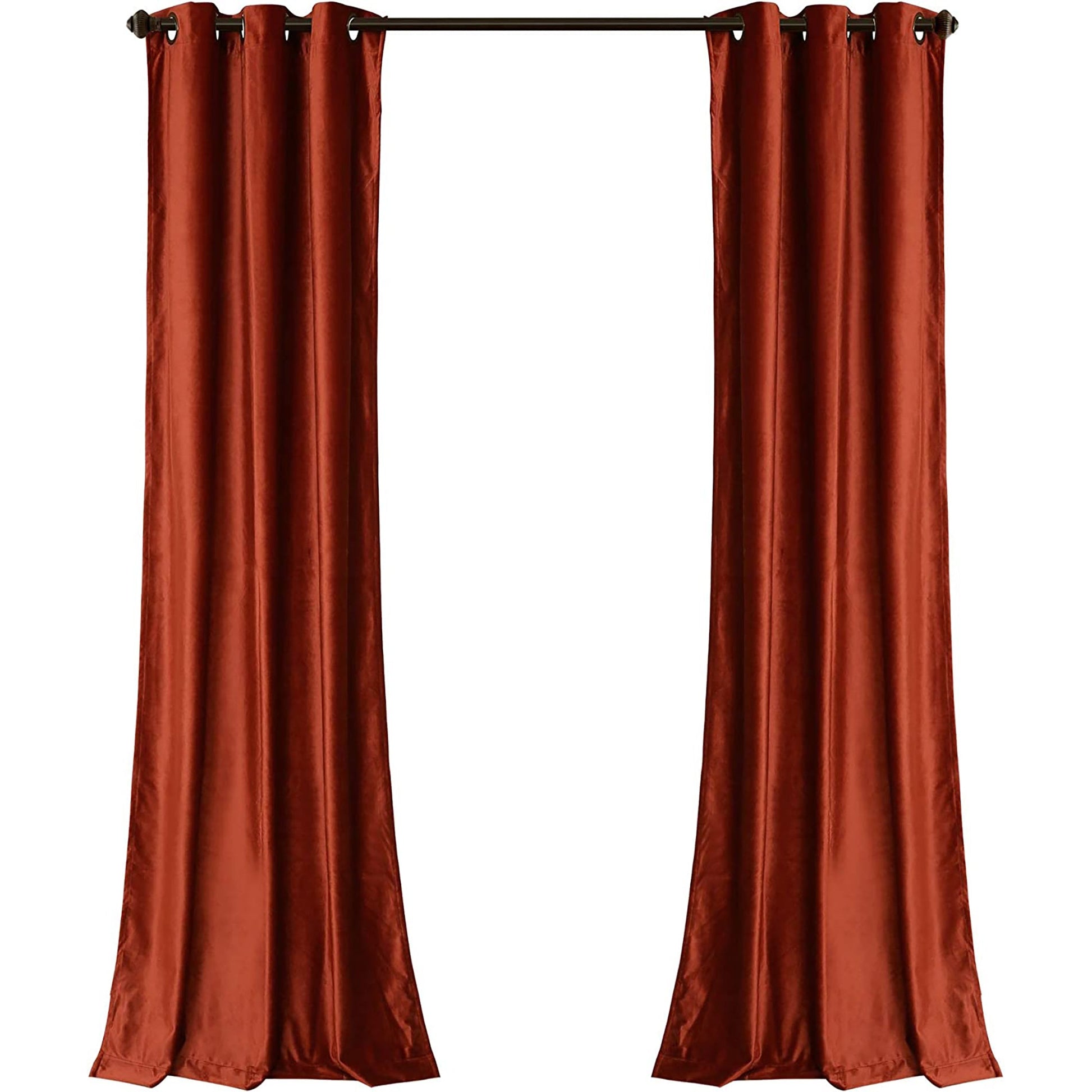 Room Darkening Velvet Curtains Window Panel Set for Living Dining Bedroom Pair 84 in - Rust