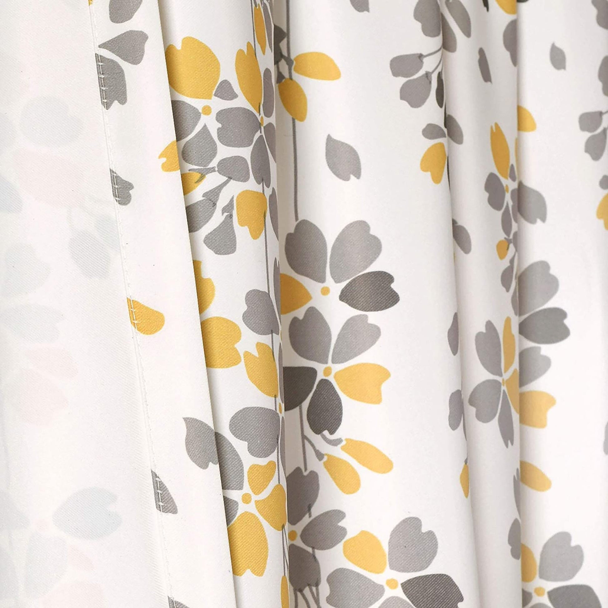 Weeping Flowers Room Darkening Window Panel Curtain Set 84X52 inch - Yellow Grey