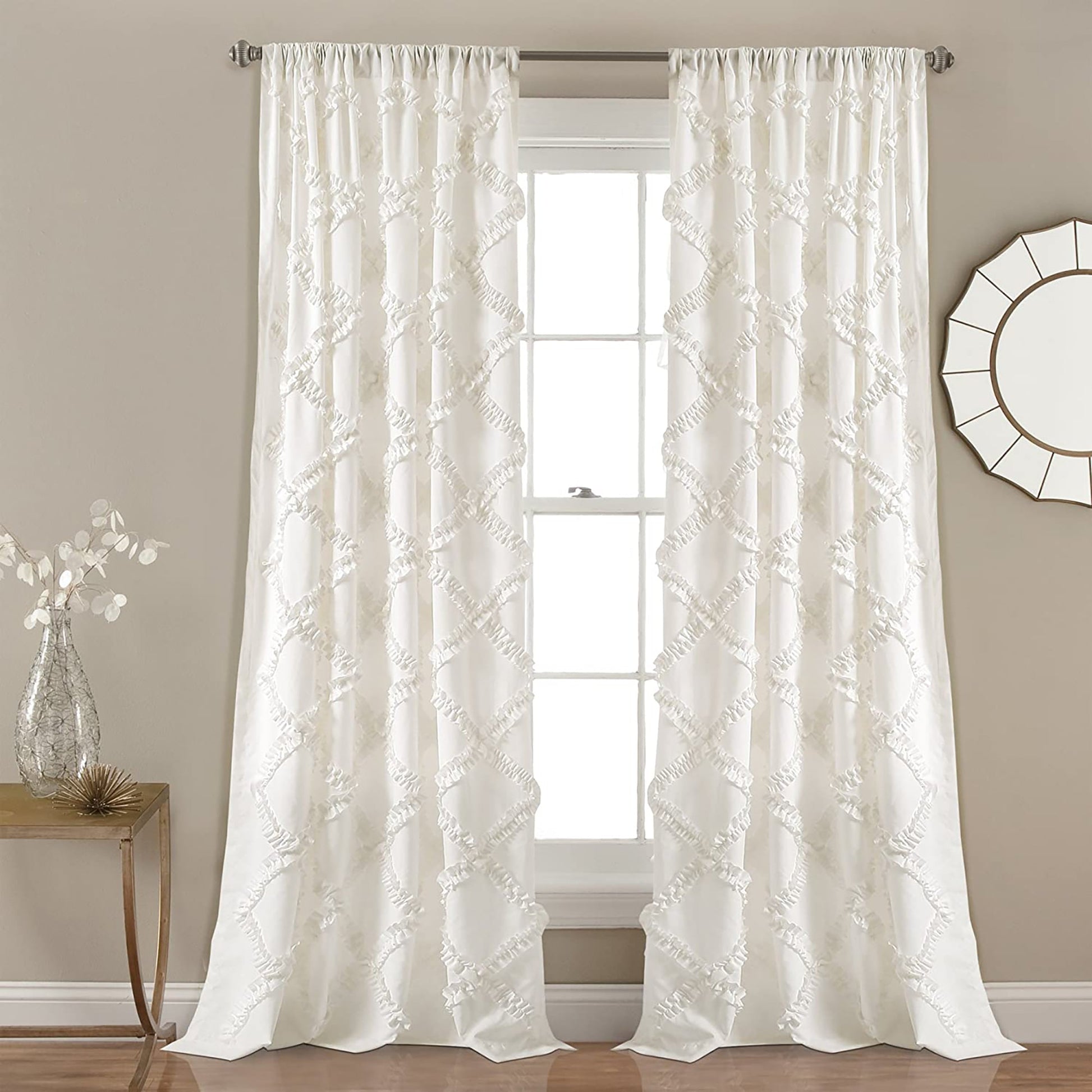 -This Ruffle Diamond window panel set is the ideal curtain for your shabby chic, modern, or farmhouse decor.